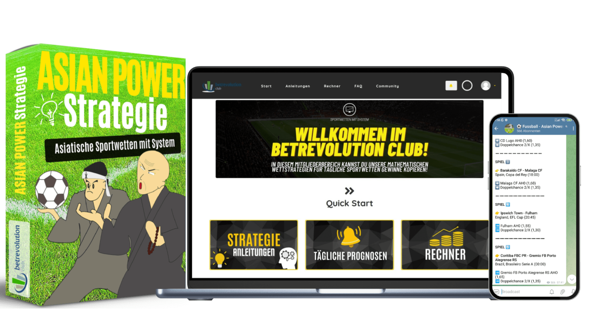 Wenn du smarter wetten möchtest und dir eine einfache, aber effektive Methode suchst, dann ist die „Asian Power Strategie“ eine klare Empfehlung. Sie nimmt dir den Großteil der Arbeit ab, gibt dir eine klare Richtung vor und hilft dir, deine Gewinnchancen nachhaltig zu erhöhen.