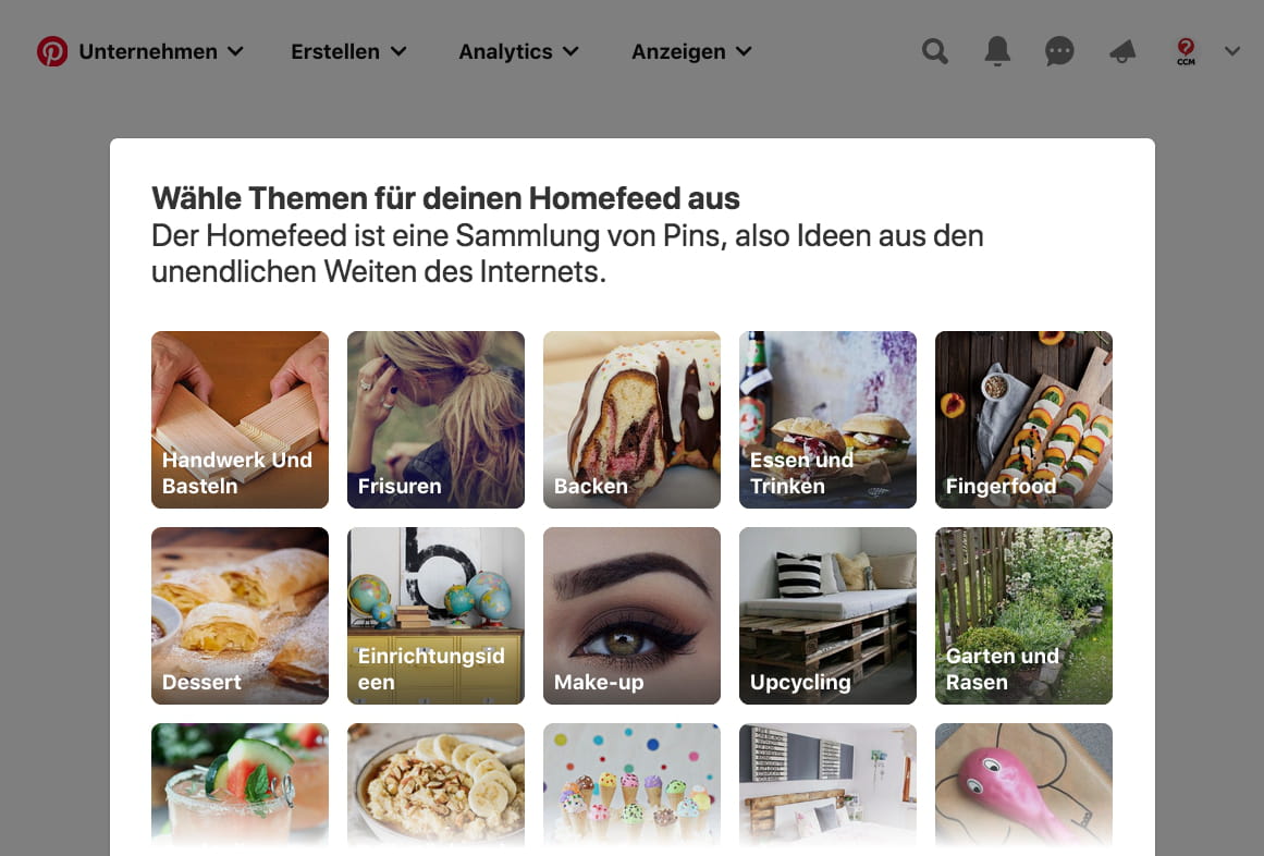 Relevanten Pins zu ihren Interessen (basierend auf bisherigen Suchen, Boards, Interaktionen),